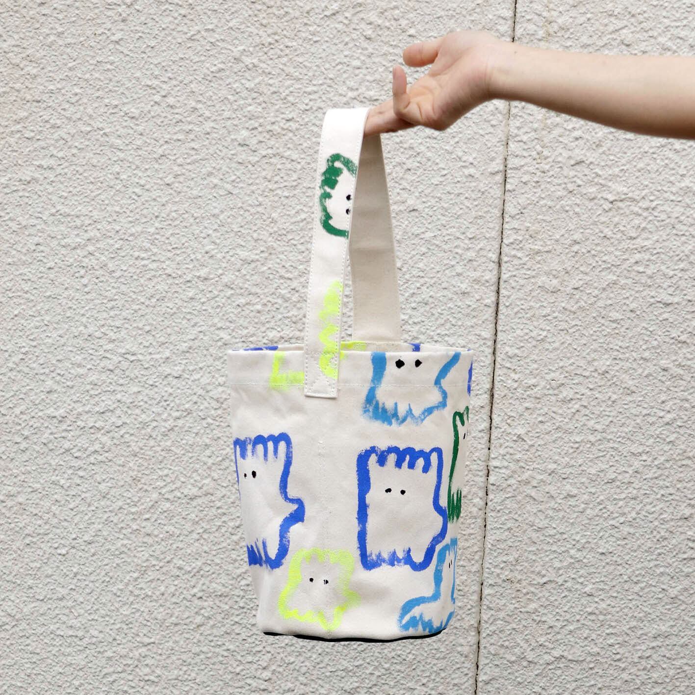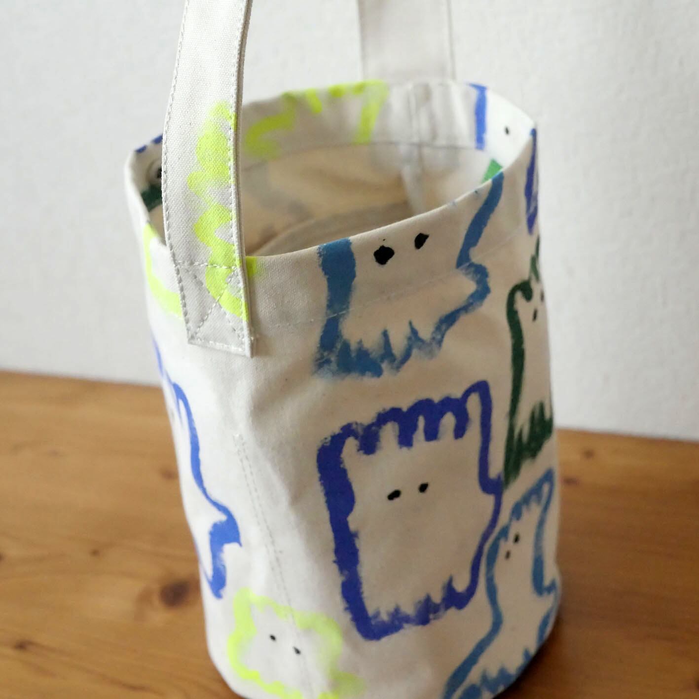 ある日急に描き始めた『アクル』という生き物のバケツバッグです。