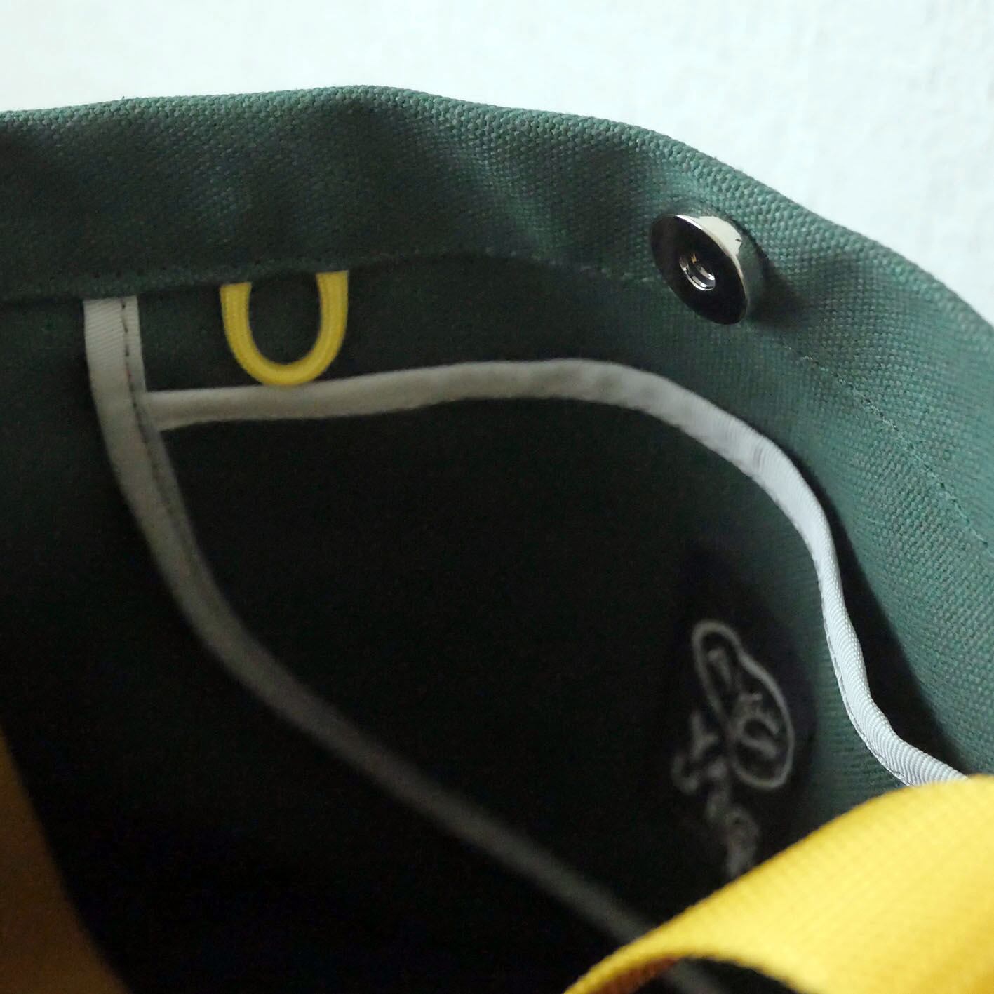 外ポケット、中吊りポケット付き。マグネットホックで口が留まります。