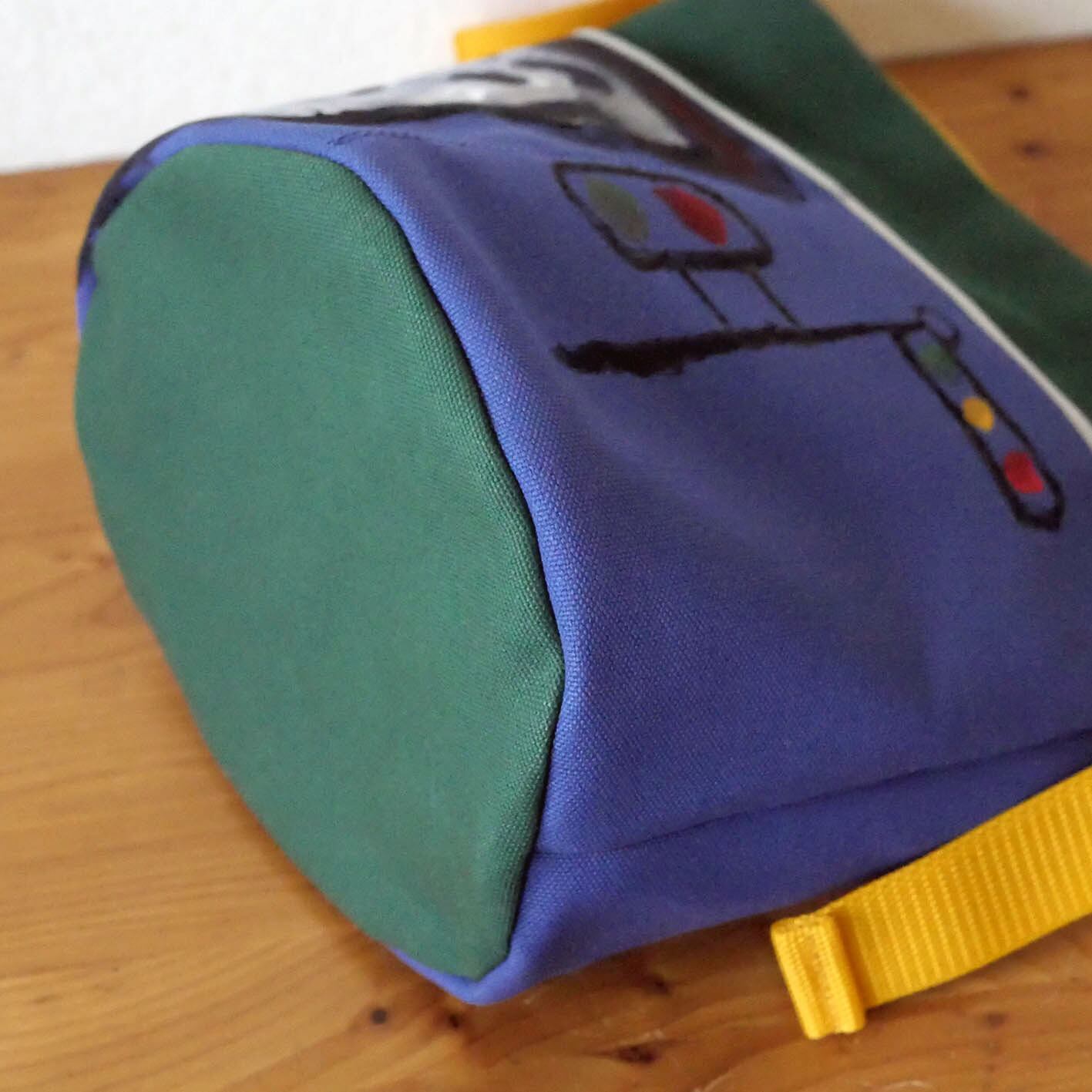 生地に直接アクリル絵の具で描いているため、他にはない一点ものであるとともに、絵の具部分は色移りする可能性がありますのでお気をつけ下さい。
