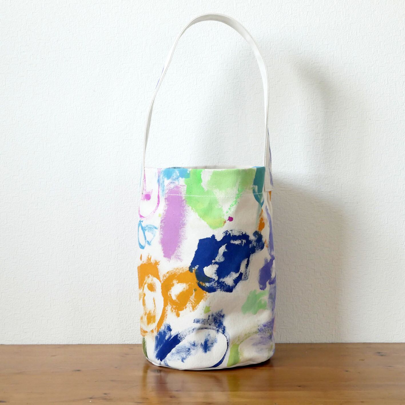 生地に直接アクリル絵の具で描いているため、他にはない一点ものであるとともに、絵の具部分は色移りする可能性がありますのでお気をつけ下さい。