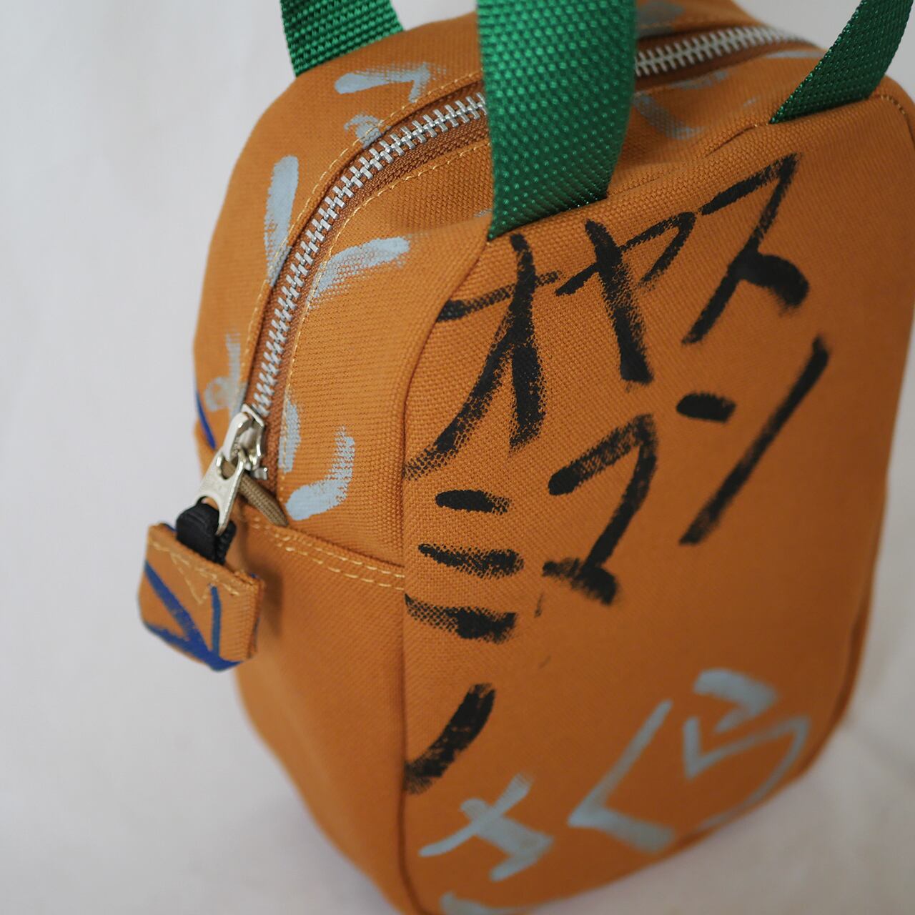 生地に直接アクリル絵の具で描いているため、他にはない一点ものであるとともに、絵の具部分は色移りする可能性がありますのでお気をつけ下さい。