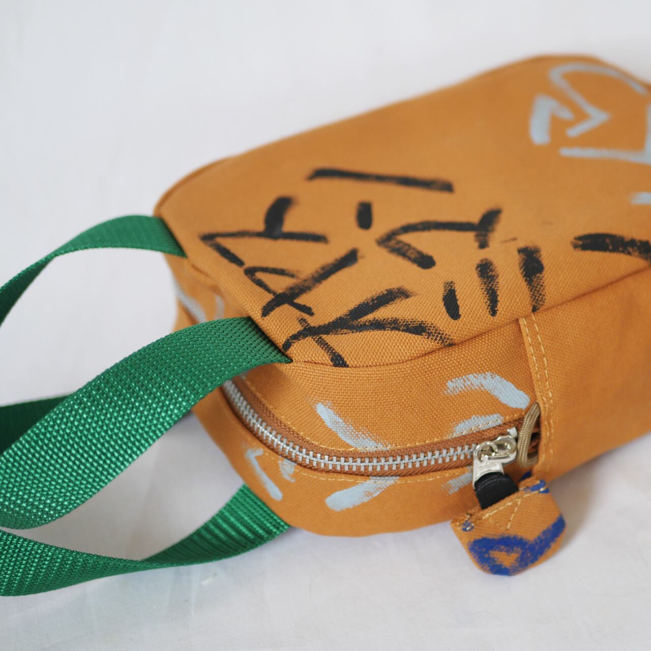 アートと縫製の仕事の隙間に一人で始めたハンドメイドのバッグブランド、YAGULTのニューライン。美術の活動で通っている福祉施設の方々に布に直接絵を描いて貰って、その絵に合わせてフリーハンドで裁断、縫製。感覚的に一点物のバッグを作るプロジェクト。