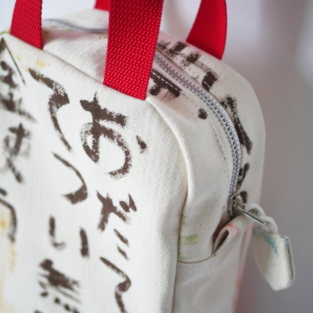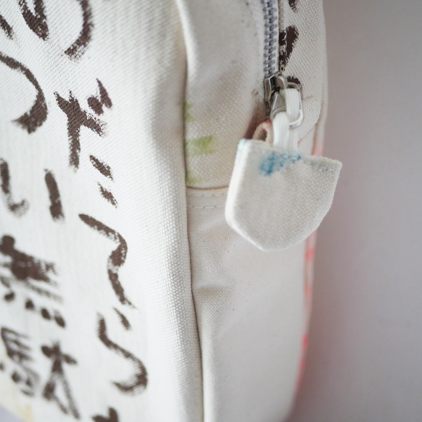生地に直接アクリル絵の具で描いているため、他にはない一点ものであるとともに、絵の具部分は色移りする可能性がありますのでお気をつけ下さい。