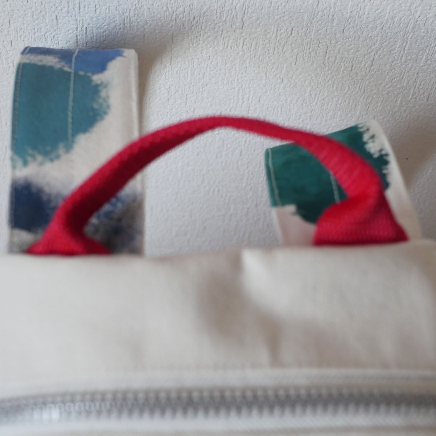 生地に直接アクリル絵の具で描いているため、他にはない一点ものであるとともに、絵の具部分は色移りする可能性がありますのでお気をつけ下さい。