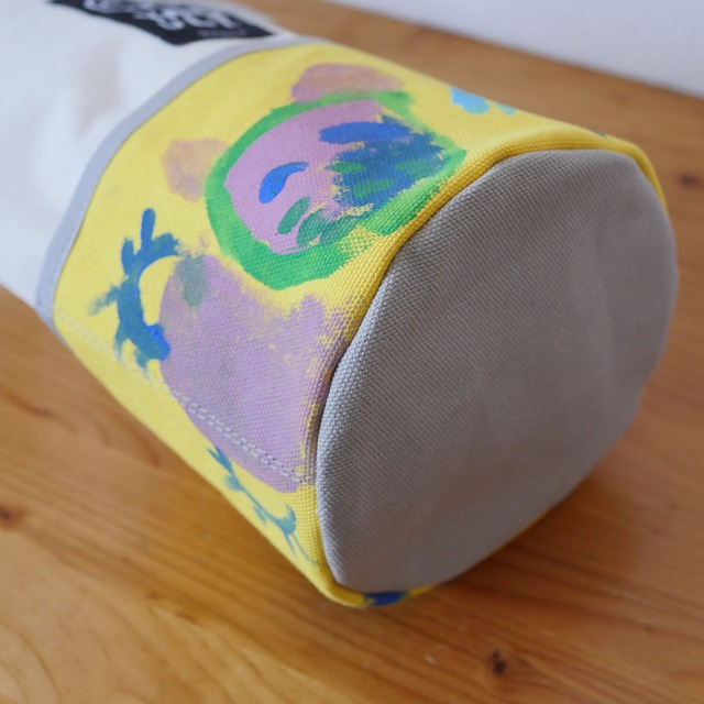 生地に直接アクリル絵の具で描いているため、他にはない一点ものであるとともに、絵の具部分は色移りする可能性がありますのでお気をつけ下さい。